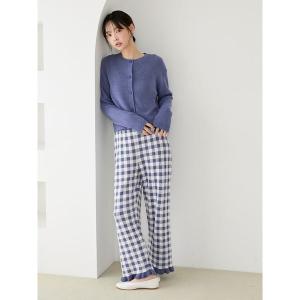 パジャマ ルームウェア 「WhiteDay」リブカーディガン&チェックロングパンツセット レディース