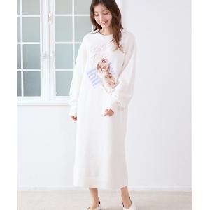 パジャマ ルームウェア ツインキャットジャガードワンピース レディース