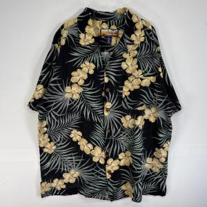 古着 ハバナ ジャックス カフェ 半袖シャツ アロハ レーヨン 植物 肉厚 M ブラック系 総柄 メンズ