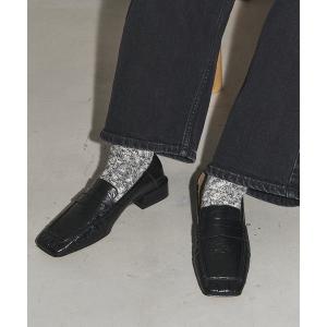 ローファー スクエアトゥ 6.5cmヒール ローファー レディース
