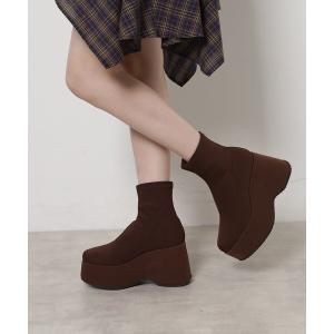 ブーツ スタイルぐんっとアップ!厚底ニットショートブーツ レディース