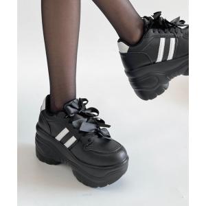スニーカー 軽量厚底 スタイルアップソール メニーリボン ライン スニーカー2476 レディース
