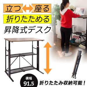 スタンディングデスク 幅90 手動 昇降デスク 折りたたみデスク 机 高さ調節 キャスター付き おしゃれ パソコンデスク 在宅ワーク 平机 E-WIN SD92