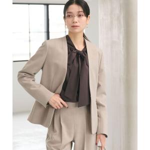 ジャケット ノーカラージャケット ダブルクロス ノーラペル ジャケット ウォッシャブル ストレッチ レディース