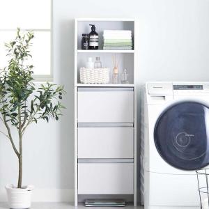 薄型フラップランドリ―ラック ホワイト 約幅45cm 組立品