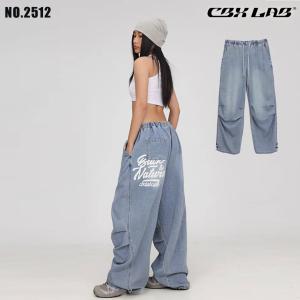 レディース デニム パラシュート パンツ ダンス 衣装 ブルー ワイド 練習着 レッスン着 ゆったり ストリート