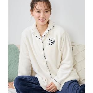 パジャマ ルームウェア 「まるで毛布!のような暖かさ」ロゴ刺繍前開きマイクロファイバーパジャマ レディース