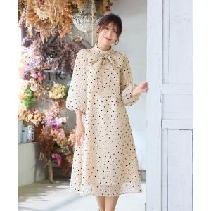 ワンピース オーガンジーフロッキードットリボンワンピース