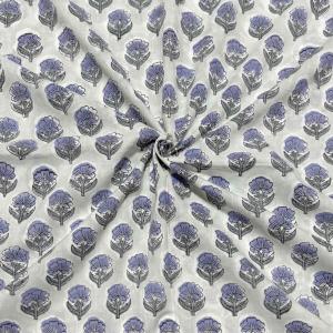 【50cm単位】グレーブルースモールフラワー インド ハンドブロックプリント生地 テキスタイル コットン