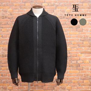 【期間限定ポイント10倍】24AW TETE HOMME ドライバーズ ニットブルゾン 1024513021 ガーター編み ウォッシャブル リラックス メンズ 紳士