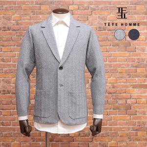 【期間限定ポイント10倍】24秋冬 TETE HOMME ヘリンボーン グラフェンニットジャケット 1024531031 保温性 抗菌 防臭 おしゃれ メンズ テットオム