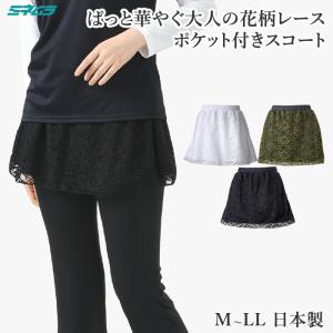 レース テニス スコート レディース スカート テニスウェア ゴルフ ヨガ フィットネス スポーツウェア UVカット ロング丈 ポケット付き M L LL ミネムラ 日本製