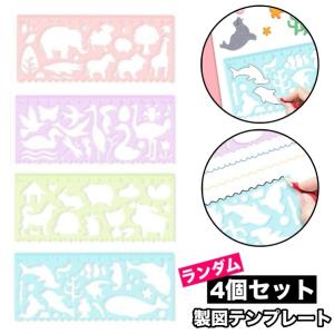 製図テンプレート お絵描き定規 4個セット ランダム 文房具 多機能定規 描画テンプレート デザイン ステンシル 絵図 デッサン