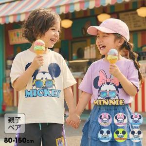 ディズニー 親子ペア Tシャツ キッズ 綿100% 子供服 男の子 女の子 DISNEY リゾート柄レンチキュラー 1587K ベビードール BABYDOLL ミッキー ミニー 爆買