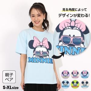 ディズニー 親子ペア Tシャツ レディース 大人 綿100% 子供服 DISNEY リゾート柄レンチキュラー 1587A ベビードール BABYDOLL ミッキー ミニー 爆買