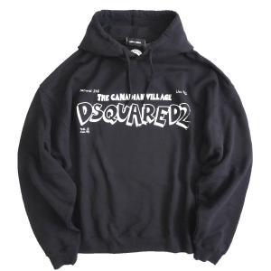 2024 DSQUARED2 ディースクエアード2 ロゴ プルオーバー スウェット パーカー 黒 ブラック LOOSE FIT オーバーサイズ Hoodie メンズ パーカ