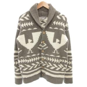 ベアフットドリームス BAREFOOT DREAMS ショールカラーカーディガン ニット 長袖 厚手 総柄 S グレー 白 ホワイト /GV メンズ