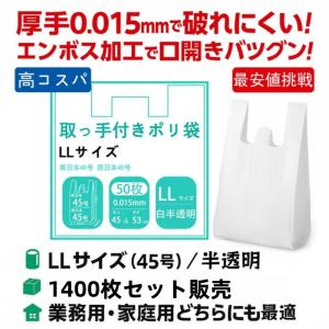 取っ手付きゴミ袋 LLサイズ (450×530mm) 厚手タイプ 0.015mm 50枚×28袋 丈夫で便利 背心型 半透明 便利な背心型ハン ドル付き 使 い捨てで衛生的 厳選iimono
