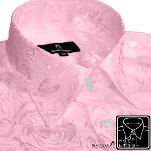 BlackVaria サテンシャツ ドレスシャツ ドゥエボットーニ 花柄 薔薇 ジャガード レギュラーカラー 無地 パーティー メンズ(ピンク) 161222