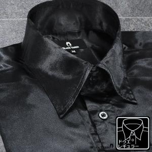 BlackVaria サテンシャツ ドゥエボットーニ 光沢 無地 レギュラーカラー 衣装 日本製 パーティー ドレスシャツ メンズ(ブラック黒) 171714
