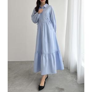 シャツワンピース サイドレースアップヘムフレアシャツワンピース