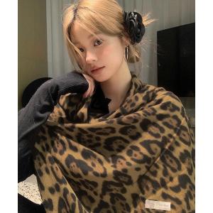マフラー ストール マフラー レオパード柄 大判 ボリュームマフラー フリンジ レディース