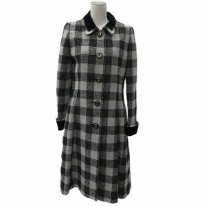 タケオ ニシダ TAKEO NISHIDA ステンカラーコート ロング丈 11 グレー チェック柄 切替 /SM25 ■GY61 レディース
