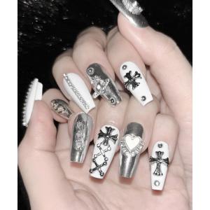 ネイルチップ 黒 ネイルチップ シール付 ネイルチップ ショート ロング ハート 蝶 花 星 赤 ピンク 即日発送 24枚入 グミ 取付キット付 3個購入で1個プレゼント