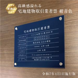 高級感溢れる 宅地建物取引業者票(令和7年4月1日施行版) 『 アクリル / 紺青色 』H35×W45cm 宅建 業者票 標識 tk-acryl01-blue
