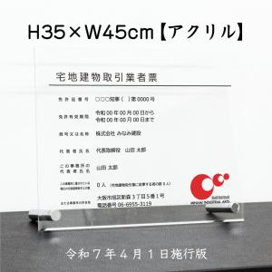 宅地建物取引業者票(令和7年4月1日施行版) 透明アクリル / 置き型(自立)ビスタイプ 宅建 業者票 H35×W45cm tk-acryl02-jiritu
