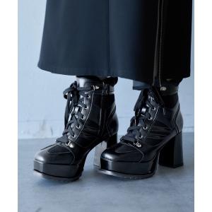 ブーツ 厚底ハイヒールレースアップブーツ レディース