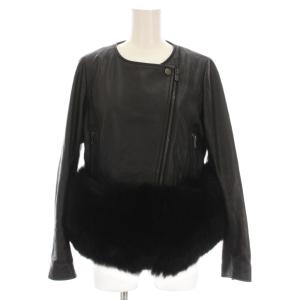 ダイアグラム グレースコンチネンタル ノーカラージャケット ラムレザー 革ジャン ジップアップ フォックスファー 36 黒 3730 4083-1