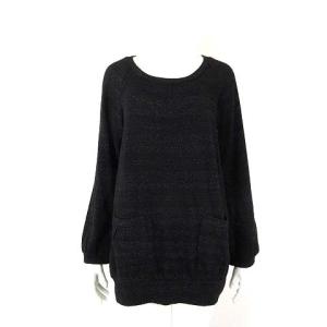 ハッシュアッシュ HusHusH ニット チュニック セーター ラメ シャドーボーダー ストレッチ 長袖 L 3 黒 ブラック シルバー レディース
