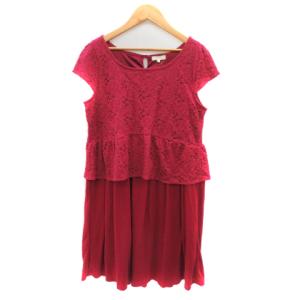 未使用品 ハッシュアッシュ HusHusH ドッキングワンピース ひざ丈 半袖 ラウンドネック レース 無地 3 ボルドー /YK20 レディース