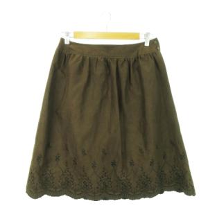 ハッシュアッシュ HusHusH スカート フェイクスエード フレア ひざ丈 刺繍 ボタニカル スカラップ 3 茶 ブラウン /AH12 レディース