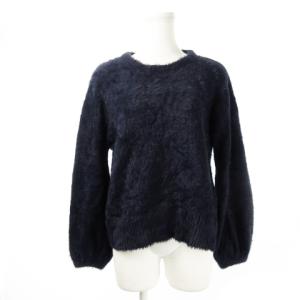 ハッシュアッシュ HusHusH ニット セーター シャギー クルーネック 長袖 光沢感 ボリューム ふわふわ M 紺 ネイビー /CK5 レディース