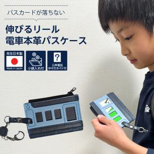 完全日本製 パスカードが落ちない 伸びるリール電車本革パスケース 非常時対応のコインケース&公衆電話のかけ方ガイド付き 子供用 リール付き 定期入れ