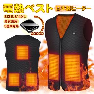 【5枚内蔵】\防寒対策 ★バッテリー付き/電熱ベスト 20000mAhバッテリー付き ヒーターベスト vネック 日本製繊維ヒーター ヒーター内蔵ベスト USB充電式
