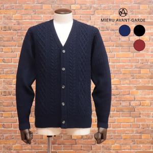 【期間限定ポイント10倍】秋冬 MIERU ニットカーディガン 日本製 アラン編み Vネック 防寒 暖か カジュアル ベーシック 上品 メンズ 紳士 ミエル