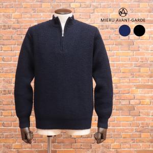 【期間限定ポイント10倍】秋冬 MIERU 長袖ニット 日本製 ハーフジップ ケーブル編み ウール100% セーター 上品 洗練 40代 50代 60代 メンズ 紳士 ミエル