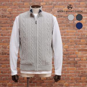 【期間限定ポイント10倍】秋冬 MIERU ジップベスト ハイネック モールニット キルティング裏地 防寒 カジュアル おしゃれ 上質 メンズ 紳士 ミエル