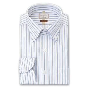 LORDSON by CHOYA Slim Fit 長袖 ワイシャツ メンズ ボタンダウン シャツ 形態安定加工 ブルー ストライプ【爆買】