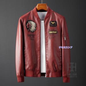 革ジャン メンズ 赤 おしゃれ 大きいサイズ レザージャケット ライダースジャケット シングルライダース PUレザー アメカジ ビター系 秋 秋服 冬 冬服