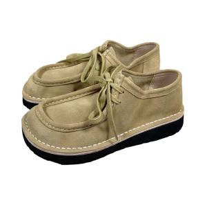 ワラビーシューズ メンズ 厚底 革靴 レースアップ 防滑 スエード カジュアル 快適 軽量 ベーシック 歩きやすい フラット アウトドア