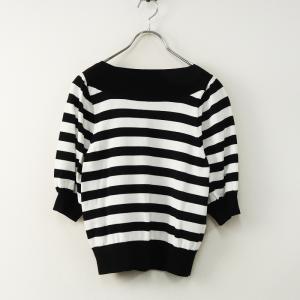 美品 定価22000円 LOULOU WILLOUGHBY ルルウィルビー ボーダー パフスリーブニットプルオーバー ブラックホワイト┃【2400014865738】