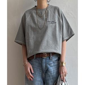tシャツ ミニ裏毛切り替え刺繍5分袖プルオーバー レディース