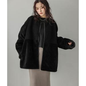 ノーカラーコート コート ボア切替ノーカラーコート レディース