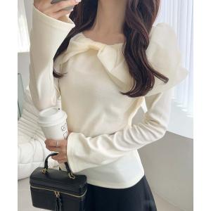 tシャツ 「mily bilet」大人フェミニンを叶える♪オフショル2WAYオーガンジーリボンプルオーバー(長袖) レディース