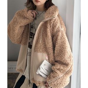 ブルゾン アウター 「JaVaジャバコラボ」ぬくぬく愛らしいプードルボア×ナイロン異素材切替フライトジャケット レディース メンズ
