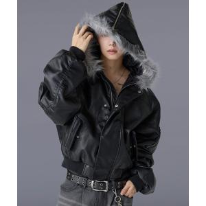 ブルゾン アウター シンセティックレザーフライトジャケット レディース